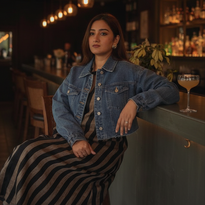 Style it with statement earrings and minimal heels for evening dinners or cocktails. For daytime, pair it with flats or sandals and layer with a light jacket or oversized shirt. Finish with a sleek clutch at night or a tote by day — the dress adapts effortlessly.
